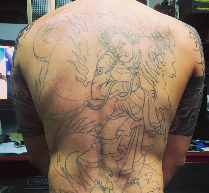 黑灰满背纹身图案
