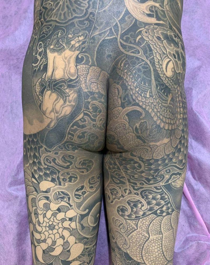 • 黑灰满背纹身图案