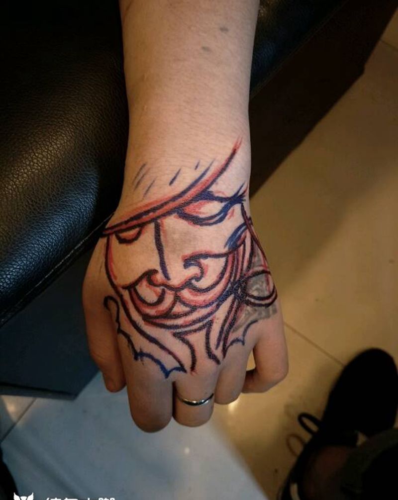 当前位置: 首页 >贵州省贵阳市纹身店-穿青纹艺纹身图案>V字仇杀,失败纹身遮盖纹身图片