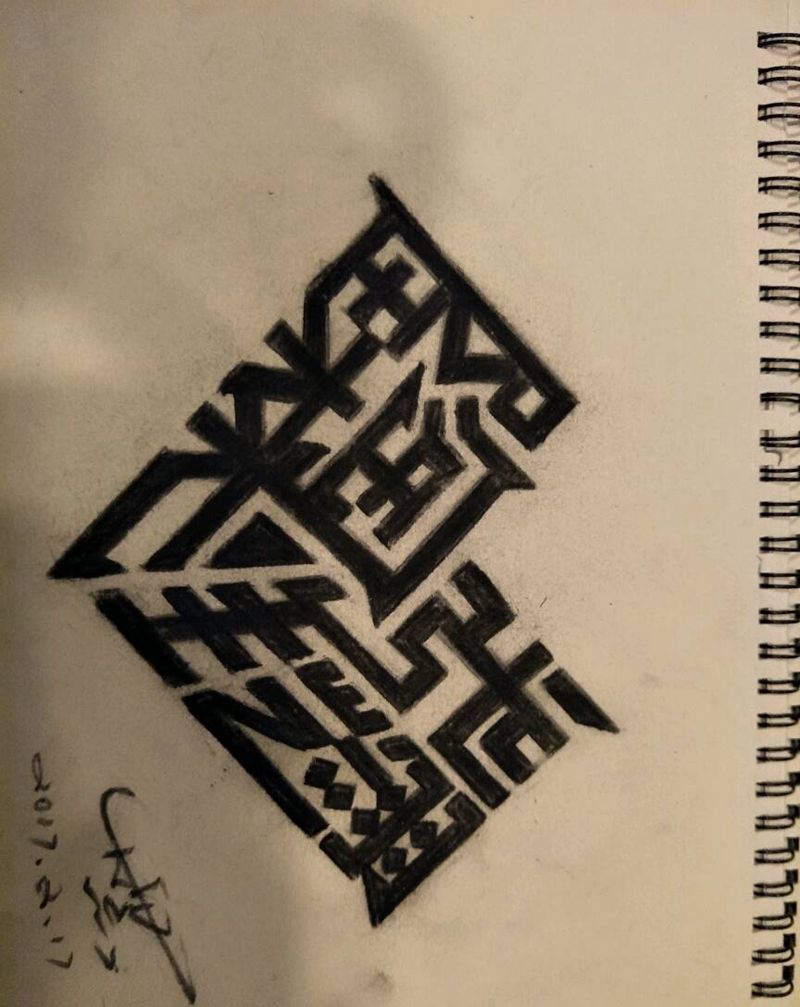 当前位置: 首页 >贵州省贵阳市纹身店-穿青纹艺纹身图案>完工,很有寓意的图腾,现场设计纹身图片