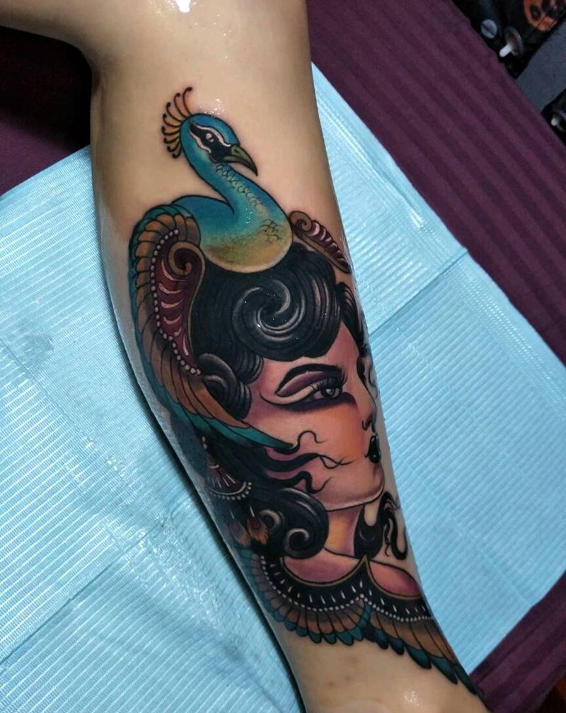 • T包小腿吹火男+阿多福纹身图片_腿部老传统新传统吹火男阿