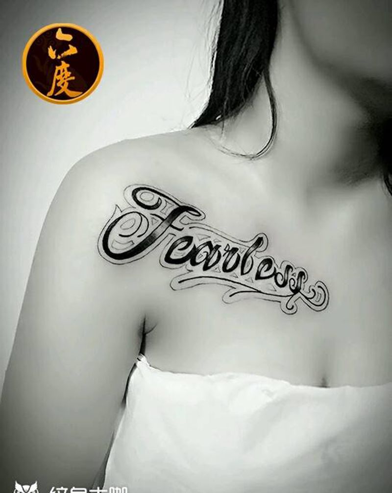 无所畏惧纹身图片_胸部清新字符成品纹身图案