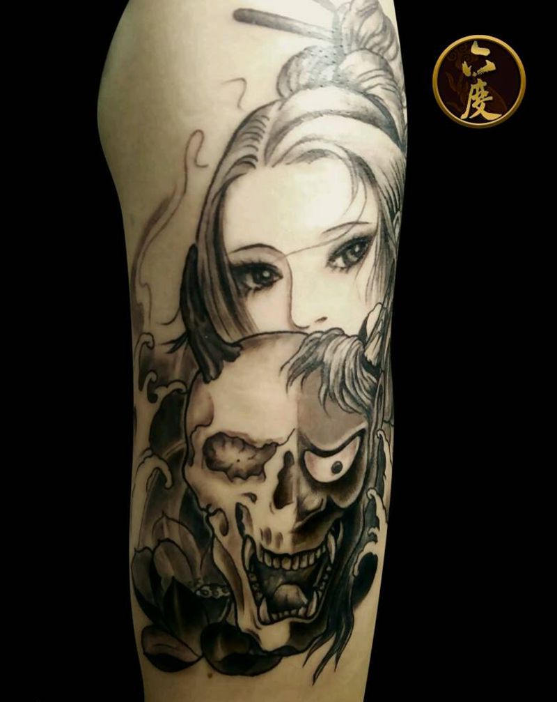 般若艺妓纹身图片_手臂传统人物鬼神成品纹身图案