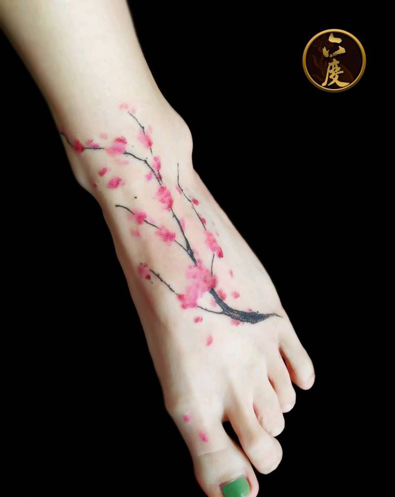 梅花纹身图片_脚部清新植物纹身图案