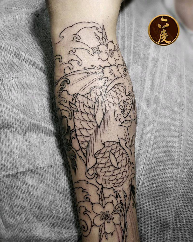 鳌鱼纹身图片_腿部新传统鳌鱼纹身图案