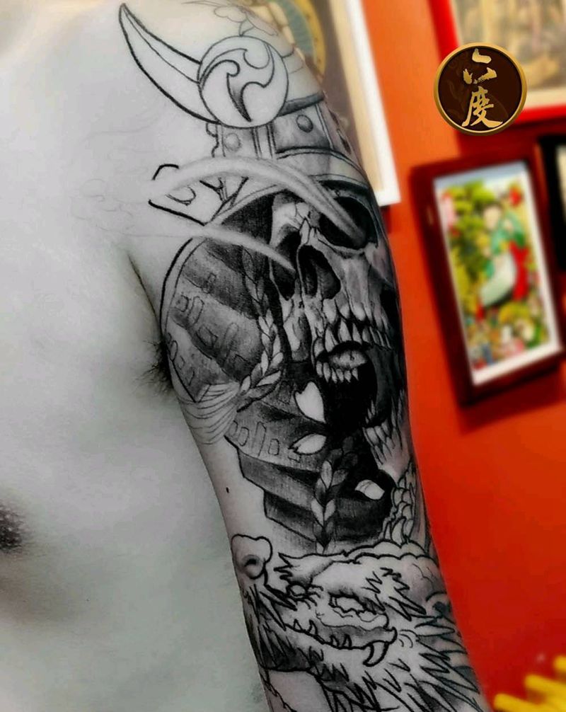 当前位置: 首页 >内蒙古赤峰市纹身店-六度刺青纹身图案>鬼武士花臂纹身图片_手臂新传统纹身图案