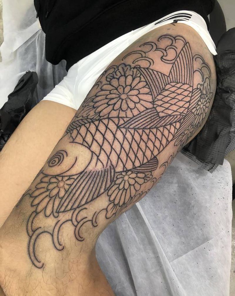 老传统花腿未完成纹身图片_腿部老传统纹身图案