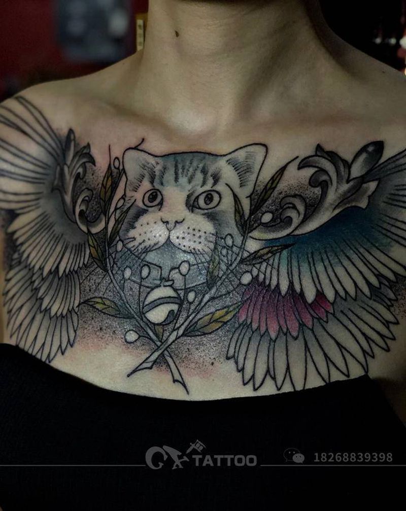 猫纹身图片_手臂点刺猫咪鬼绣文化