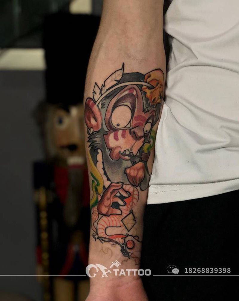 New school扎啤纹身图片_手臂New School啤酒鬼绣文化纹身图案