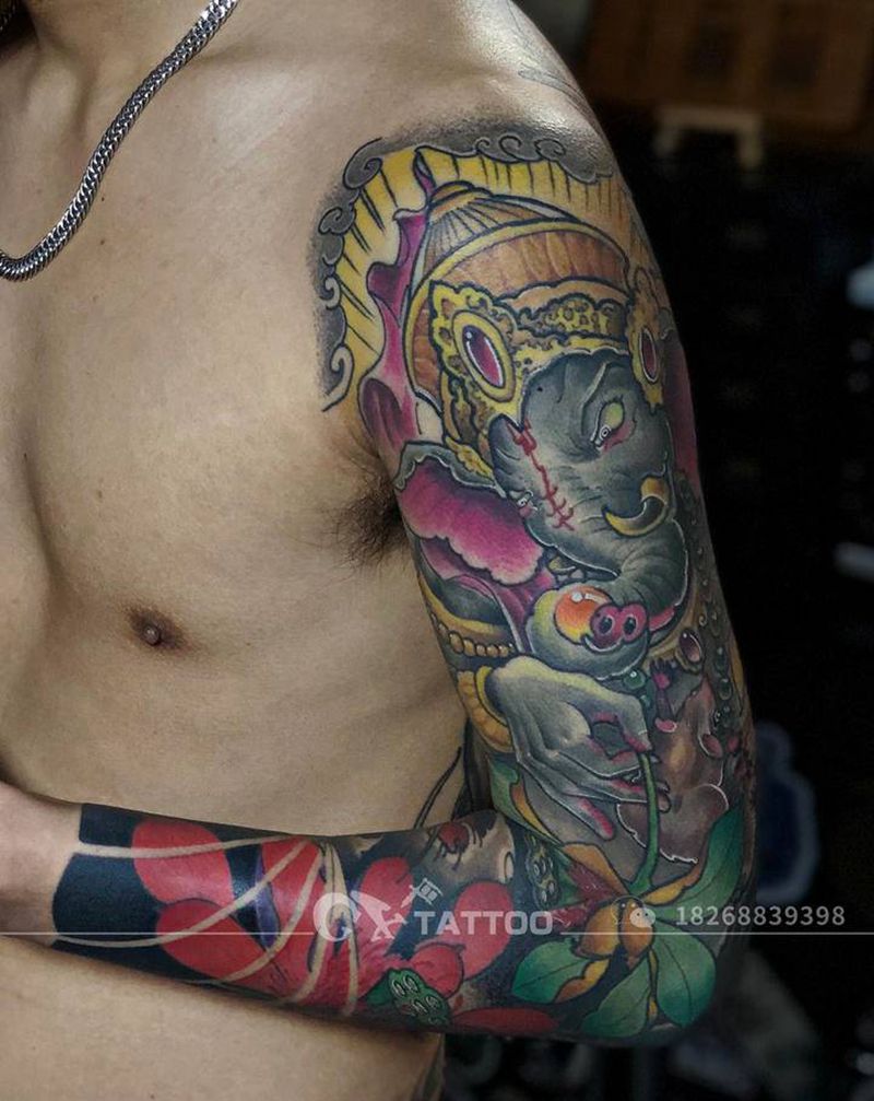 大日如来纹身图片_背部新传统老传统佛鬼绣文化纹身图案