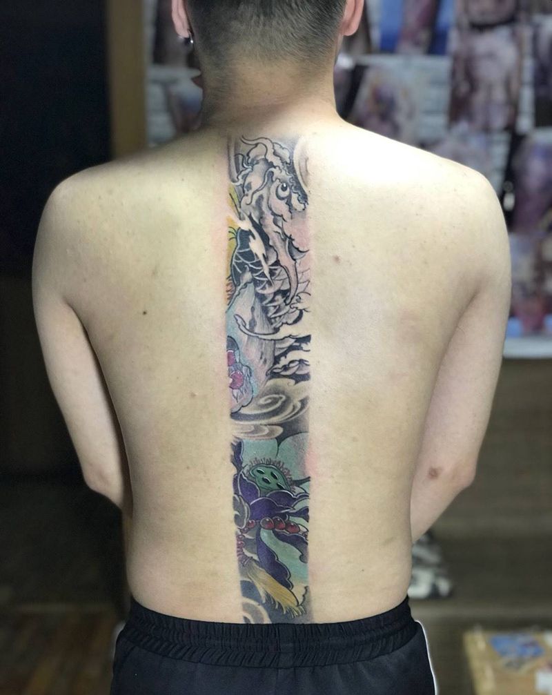 鲤鱼完工纹身图片_背部纹身图案