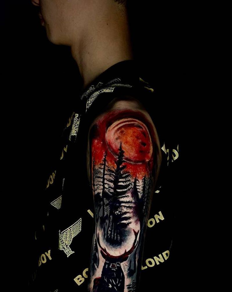 那就叫它告别艺妓纹身图片_手臂肩部欧美写实暗黑纹身图案