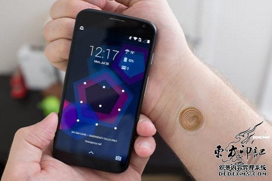 据纹身爱好者提供消息,近日,摩托与硅谷一家科技公司合作,为用户推出一种通过NFC技术进行解锁的临时数码纹身。据悉,此次推出的数码纹身解锁是为了更加方便用户使用手机,毕竟现代人的生活离不开手机,大部分的时间我们都在和手机接触,如果每次打开手机都需要输一次密码或手势,相信对于那些需要经常查看手机的朋友来说已经变得十分繁琐了。可为了保证隐私,手机密码锁又不得不设。因此这种不可取代而又简易的解锁方式便是近年来不断被研究的主题趋势。