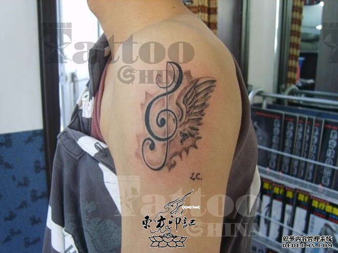 热爱摇滚的人总是能跟着潮流走的人,他们追求刺激,打破常规,在接受纹身这一点上也尤其的比其他行业的人群来的快些,这源自于他们的火热的性情,渴望自由的灵魂,音乐符号的纹身,便像是专门为这一人群而创作的纹身图案一般。以音乐符号为主导,以其他的纹身元素为辅助,创作出不一样的音乐符号纹身,渐渐地,这一纹身的创作潮流开始被喜欢音乐的人们接受了。
