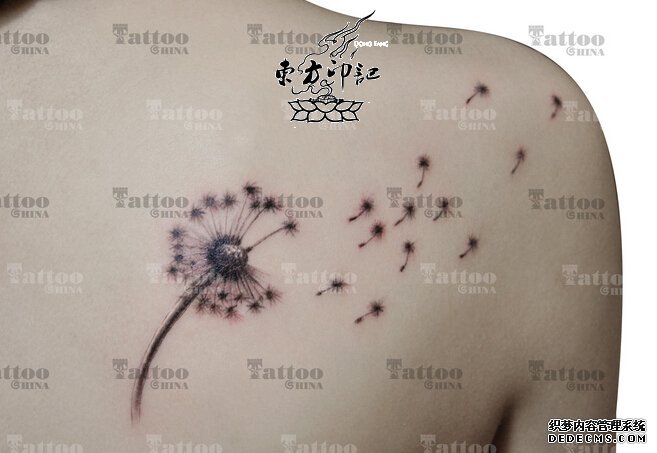 2、蒲公英纹身图案。 没有百花开放的惊艳,没有一树擎天的挺拔,却有一颗不屈不挠的心。只剩下一些凋零的记忆,随风飘落成一地的斑驳,往昔繁华,以转变成一生落寞。生命就是一场又一场的聚与散,随着时钟的时针缓缓地走动着。