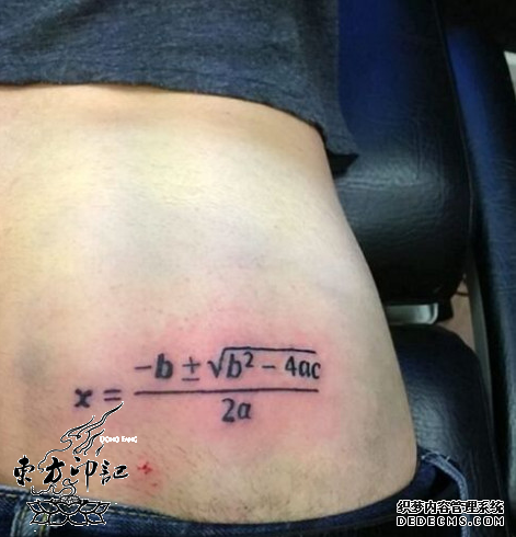 事情是这样的,一位19岁的英国小帅哥,最近两年内参加英国高考时,每次数学都考挂科了!让他非常的生气,于是在一怒之下,做了一个决定,去纹身!按理说着纹身和数学考试好像是根本走不到一起的两件事情,却在他的“努力”下走到了一起。没错,他将这两年数学考试都挂掉的公式纹在了自己的屁股上,以此激励自己,希望能在下一年考试的时候考好一点,因败在了这个公式的“石榴裙”下,于是便要永远牢记!