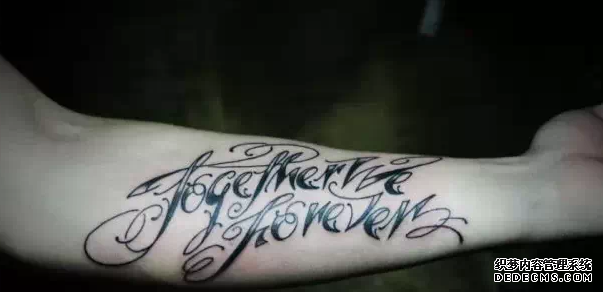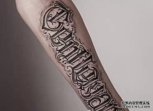 在众多纹身题材当中,文字类的纹身一直都是主流纹身,也许有些纹身图案会被时代所淘汰,不不在时髦流行,但是文字纹身却依旧不会淘汰。纹身今天要和大家说的是文字纹身当中的花体字纹身。 花体字纹身算是文字纹身的一种形式,以多变的字体样式被人们喜爱。花体字纹身往往都是以英文为主的,当然汉字就称之为书法纹身了。 设计感十足的花体字纹身让很多年轻人欲罢不能,而且这样的一种风格男女纹身都很合适。下面纹身就为大家推荐一些花体字纹身素材,看看你喜欢什么样的: