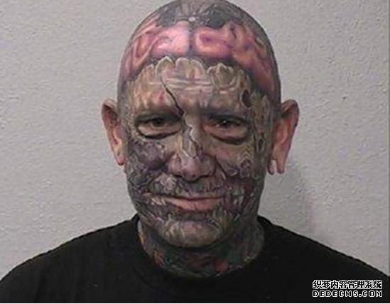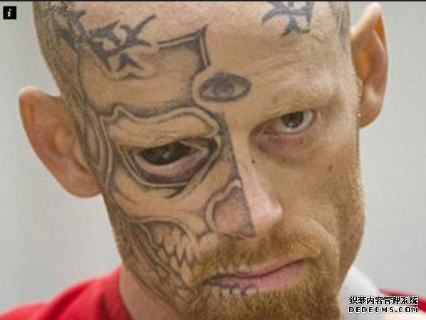 这样的纹身一般人不会去做,一般的纹身爱好者会选择一些精致的纹身素材,给身体稍微做个装饰。而像这样全脸奇怪纹身的他,也是是一位酷爱纹身的人,但也许纹身只是为了掩饰自己的罪行罢了!记得在曾经纹身店也和大家说过另一个美国罪犯的纹身,不仅面部纹身,就连眼球也纹成了黑色,宛如“伏地魔”,