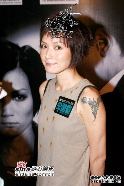 卢巧音,这位出生于1974年的香港著名歌手,其曾与乐坛天后王菲是一个年代的流行歌手,据说这位喜欢姐弟恋的卢巧音,早些年前也与谢霆锋拍拖,对于自己的恋情,卢巧音向来有问必答,从不遮遮掩掩,如此爽朗的个性,从其身上的纹身图案中也可以看出来。据香港媒体爆料,卢巧音是香港最早一批尝试纹身的女艺人,除了纹身之外,卢巧音还大胆地在肚脐上穿孔,如此壮举,曾被其家人呵斥,但是卢巧音却很爽朗地回复道,纹身纹在身上很漂亮呀,也是一种艺术啦!