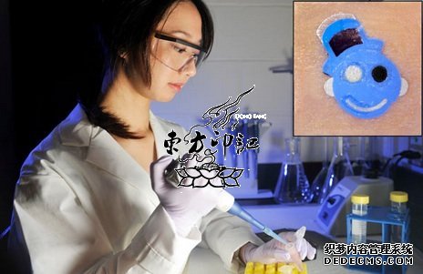 这种笑脸纹身贴不是一般的纹身贴,而是一种内置了健康监控传感器的临时纹身贴,通过这种特殊的装置,这个临时纹身贴可以及时的测量和反应你的皮肤pH值,通过皮肤pH值的不同变化来反应你的身体健康状况。当你因为压力过大而产生新陈代谢反应时传感器就会将检测到的数据自动发送给你的医生。当然,这个临时纹身贴的笑脸造型并非是随意为之的,而是有着不少功能在里面,例如这个笑脸纹身贴内包含有离子选择性电极(ISE),而这个工作电极则位于笑脸纹身贴的眼睛部位,笑脸纹身贴的耳朵部位则是监控传感器,用于随时提取你的健康数据并发送给你的医生。