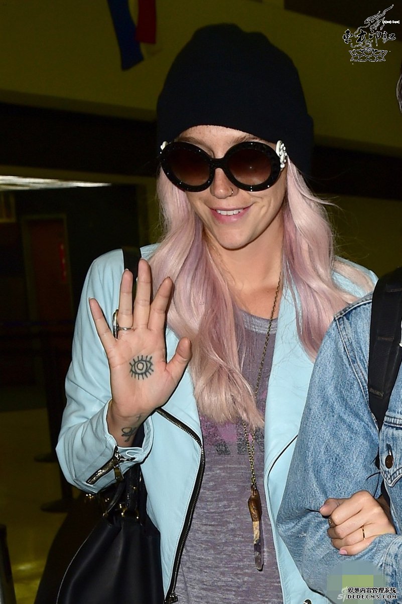 在手掌上纹身,貌似和在脚掌心上纹身是一样的吧——痛并痒着。最近,美国流行女歌手钱妞亮相L.A.机场,与其一同亮相的还有钱妞的大胡子男友Brad Ashenfelter,心情大好的钱妞还向现场的粉丝们挥手致意,而其举起的手掌上惊现一处新纹身,形状似眼睛!