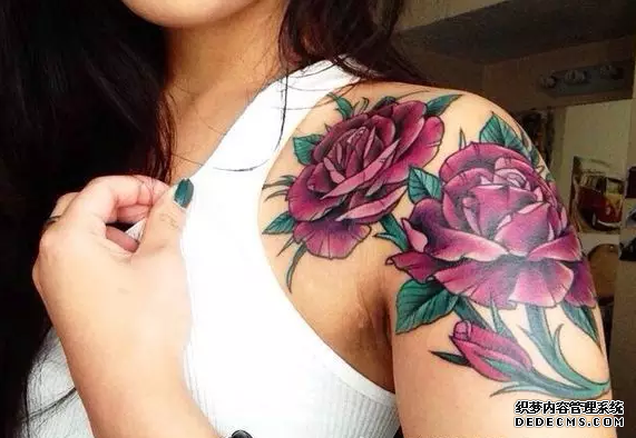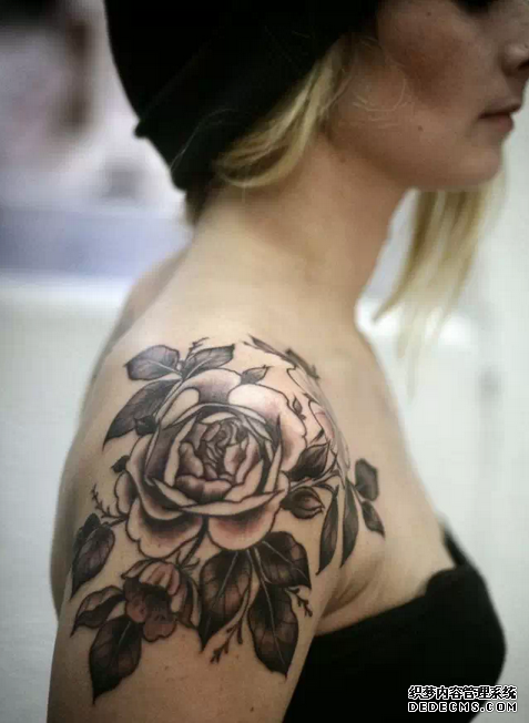 论纹身的性感之处,胸部以上、肩膀附近也可以说是一个“常胜将军”。很多人选择锁骨纹身、肩胛骨纹身、胸前纹身,但是肩头那小小的地方经常会被忽视。今天纹身小编就和大家说说肩花纹身图案。 在肩头上纹身往往会被大家成为肩花纹身,肩花纹身素材往往都采用的圆形图案或者是一些玫瑰、百合等花朵。肩花纹身可不止属于女生哦,在我们纹身的客户当中,选择肩花纹身的男性也很多,这样的风格不分男女。 夏天来了,赶快做一个肩花吧,好让你在炎热的夏季大放光彩!