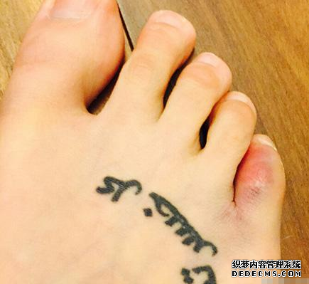 第一处就说说陈乔恩脚背上的纹身:近日陈乔尔网上晒出一张脚趾受伤的照片,虽然脚趾红肿惹人心疼,但是比脚趾更抢眼的是脚背上的文字纹身,很多纹身的小伙伴给她留言到:教主,这个纹身到底啥意 思?不过未得到回复。
