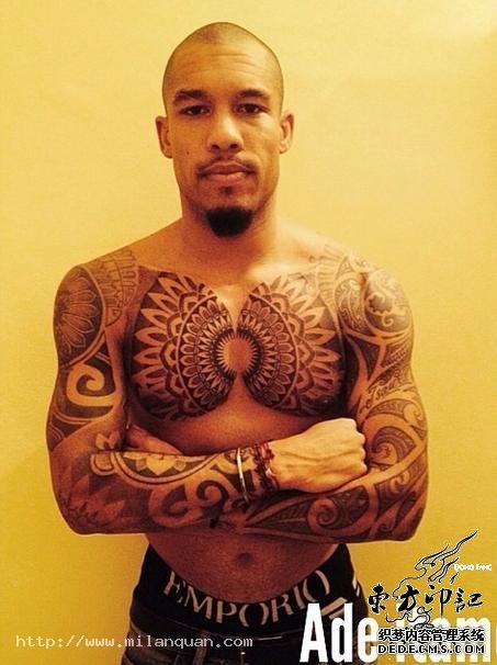 据纹身爱好者透露,德容是一位超级纹身控,虽然其在赛场上没有脱衣秀纹身的习惯,但是其露出的两只纹身花臂,还是让球迷们发现了其对纹身的痴迷,而最让粉丝们津津乐道的是其胸前的纹身图案,这个对称的纹身图案很像是一幅复杂的蝴蝶效应图,体现了其柔情的一面。