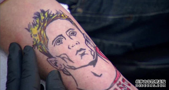 然而结果是托雷斯开场不到1分钟就接格列兹曼横传打远角得手了....看到结果的克雷格-伯利便只好履行承诺做纹身,毕竟是愿赌服输,于是他在最近的纹身店做了托雷斯肖像的纹身。