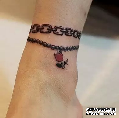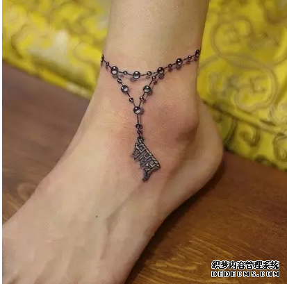 手链或者脚链纹身没有什么特殊的寓意,就是为了好看。除非是某个手链对纹身爱好者本人来说非常的重要,会去将这个手链以纹身的形式做在身上。 手链纹身的组成和手链实物很想,大多数都是珠串手链、脚链,或者是一些带有吊坠形式的手链、脚链。做手链纹身也有一个好处,就是不会轻易和别人的重复。 在纹身行业,和别人的纹身做重复的太多了,如果你想拥有一个独一无二,又特殊的纹身,可以做一个手链纹身啦! 看看纹身为您推荐的一些手链纹身,是否还满意?