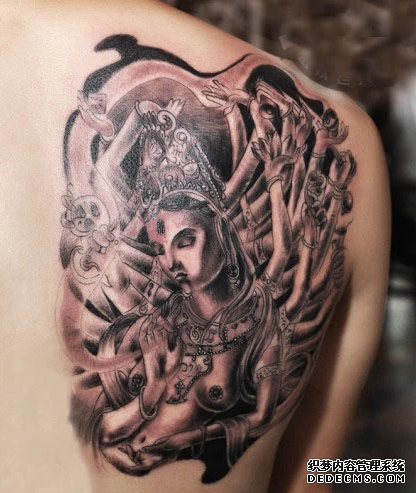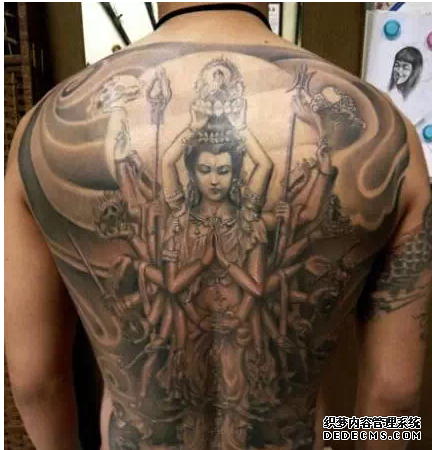千手观音,是阿弥陀佛的左协助,同阿弥陀佛和大势至菩萨合称为西方三圣,千手观音又被称为千手千眼观世音菩萨,是佛教的六观音之一。对于喜欢纹身的人来说,千手观音也是一种极好的纹身素材,尤其是对生肖鼠的人和信佛之人,下面纹身就和大家说说千手观音纹身。