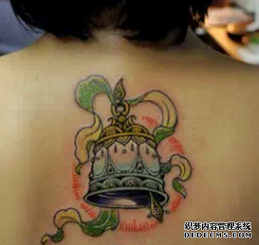 铃铛纹身都是依据真是的铃铛做成的,有的是喇叭一样的铃铛纹身,颜色可以很多种,而且还可以加上蝴蝶结纹身一起。也有的铃铛纹身是圆形的模样,也是非常的好看。