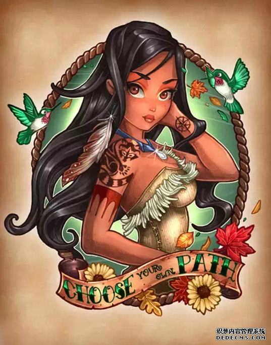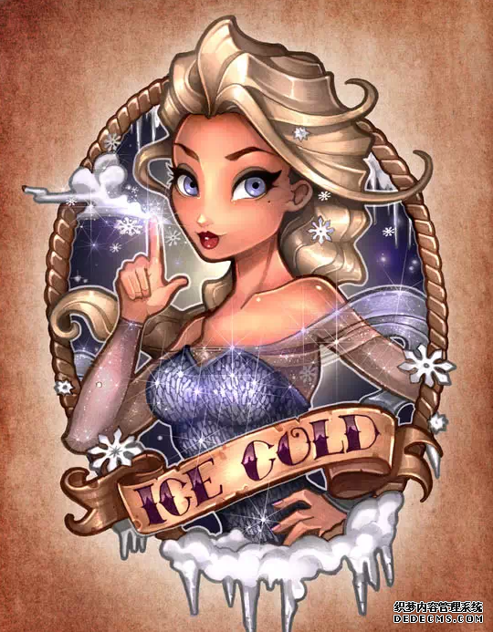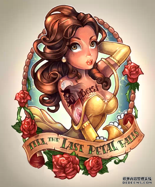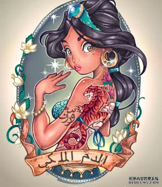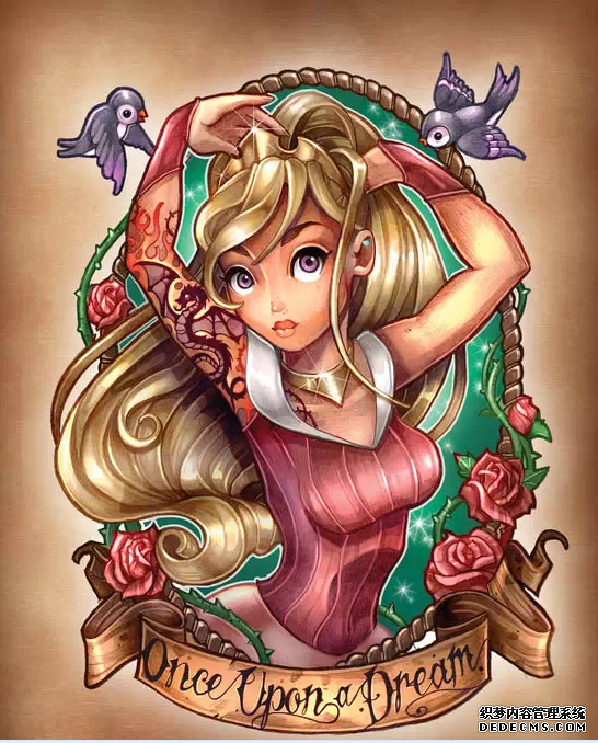 如今,迪士尼公主已经成为一种非常时尚的纹身素材,迪士尼公主纹身有着童话般鲜艳的色彩和欧美标志性的卷发和公主群。
