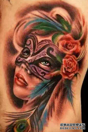 面具纹身当中常见到的一些样子有威尼斯面具纹身、防雾霾面具纹身或者是小丑面具纹身等,V字仇杀队的面具纹身也很经典。其中威尼斯面具是一种非常古老的面具,也是最受纹身爱好者喜欢的一款面具纹身。