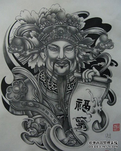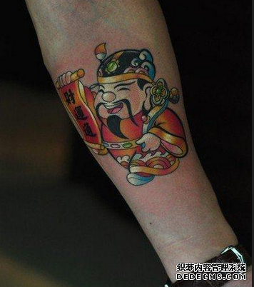 人为财死,鸟为死亡,这是一句流传至今的话语,这句话很直接的说明了钱财对于一个人的重要性。在纹身当中也有很多纹身题材都是有着招财的意义,比如说鲤鱼纹身、貔貅纹身、象神纹身等。而今天纹身要和您说的是财神爷纹身图案。 财神爷是大汉民族民进传说的一位主管着财富的神明,在逢年过节的时候家里也经常会张贴财神的画像,祈求自己在新年里有着很好的财气。财神爷也有很多种哦,比若说文财神、武财神、赵公明等,具体的可以自己了解一下。 除了张贴财神画像,财神纹身近些年来随着纹身的发展也越来越受欢迎了。财神纹身当然是寓意着招财纳福,财神纹身是一种精神寄托。在现实生活当中还是要君子爱财取之有道呀!