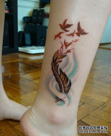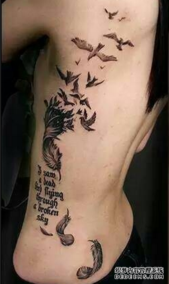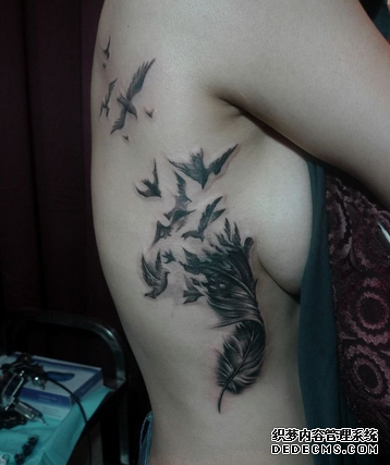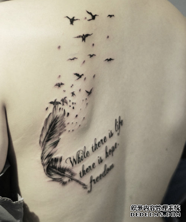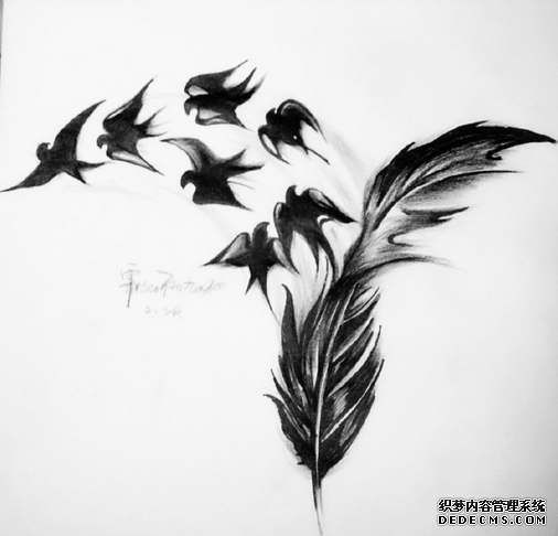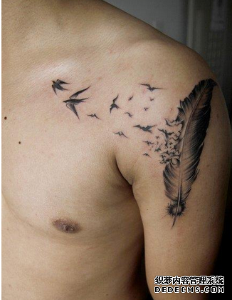 在纹身当中,羽毛纹身是一种非常常见的素材之一,不管是男性纹身爱好者还是女性纹身爱好者都可以纹。而且羽毛纹身可以纹出小清新,也可以纹出震撼和霸气。很多人对羽毛纹身增加了许多的创新和创意,比如说羽化燕纹身图案,也是近些年来比较火的素材。纹身下面就和你说说羽化燕纹身的含义: 羽毛纹身本身寓意着简单纯洁的心灵和坚韧的性格,同时也是高贵和绅士的象征。羽化燕纹身在此基础上更是增添了一些梦幻的色彩,轻盈的羽毛在头部或尾部飘出美丽的燕子,也是讲燕子纹身和羽毛纹身最好的结合。 羽化燕纹身和羽毛纹身一样,不仅是女生钟爱的纹身素材,男性也可以纹在身上。在纹身做纹身的客户当中,就为两位男士做过羽化燕的纹身。