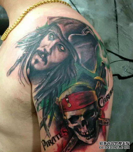 海盗纹身往往都是以这两种形象示人的,大多数的海盗纹身灵感来源于《加勒比海盗》,里面的杰克船长,浑身上下都散发着令人窒息的魅力,他是现实生活总很多人的偶像,于是他的形象便成就了经典的海盗纹身。当然海盗纹身还包含了海盗骷髅纹身,也是相当经典的!