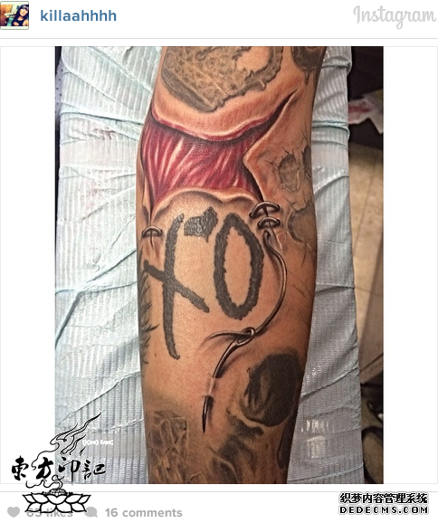 这个3D的伤口纹身,最雷人的地方貌似就是那根穿在肉里的针线了吧,纹身师傅能够将其纹的如此立体,委实是大师级水平啊!