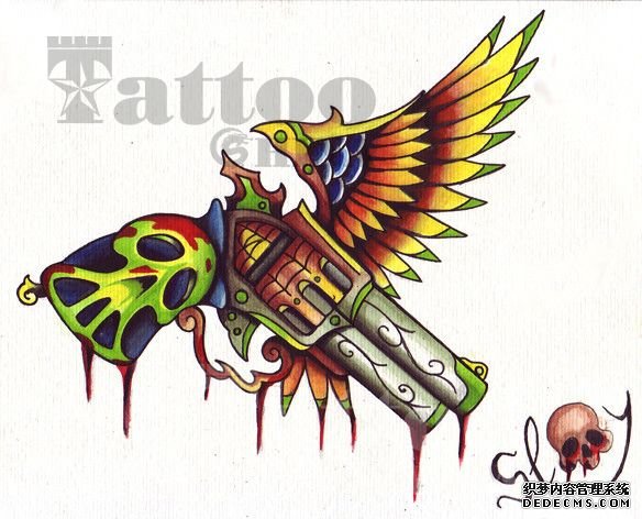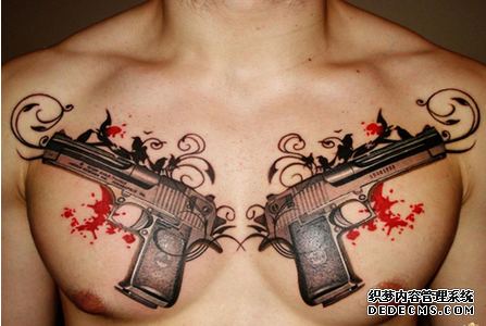 过去选择一些保佑自己的纹身,基本都是佛、观音等传统的纹身图案,而现在人们的思想开放,想法也很大胆。所以纹什么的都有,手枪就是其中一个。手枪听起来非常霸气的一个词,它往往都归警方所有,而普通人选择手枪纹身,也是有原因的。 手枪纹身从外形上来看,就是酷酷的样子,而且它有着自我防范的能力,人们相信它可以保护到自己,手枪纹身还有一种伸张正义,维护和平的寓意。尤其是对于男性来说,手枪纹身是权利和威严的象征。 手枪纹身图案往往也会和其他图案一起搭配,比如花朵纹身,比如骷髅纹身,将他们结合起来看起来会更加的富有艺术感,当然最重要的是做出手枪纹身的生动效果和真实性。