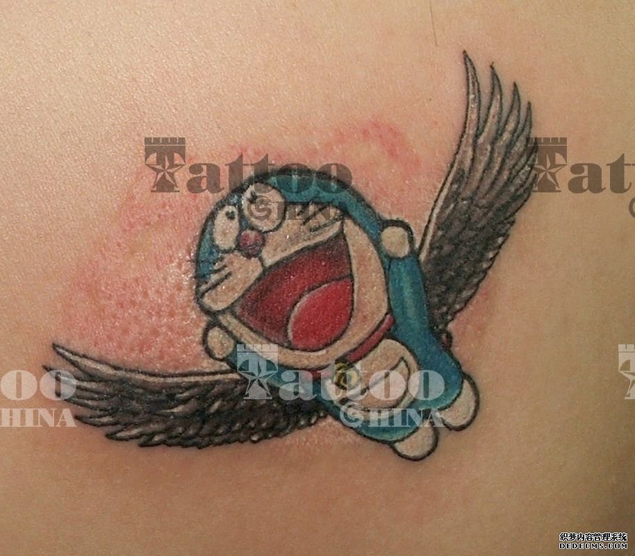 一些常见的卡通题材大致有:龙猫、蜡笔小新、小黄人、kitty猫、多来A梦、维尼小熊、米老鼠等,当然这都是根据个人喜好,这样的纹身图案比较精致小巧,是很多小清新的男生、女生喜欢的。当然也有人会选择大面积的纹上某个动漫人物。