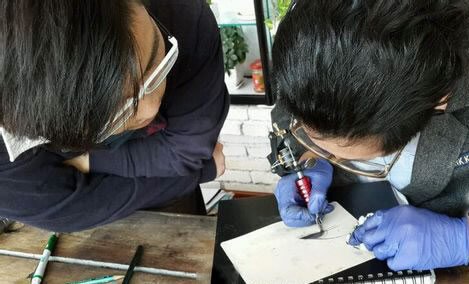 学习纹身首先要从熟悉纹身工具开始。纹身机的原理和结构、调试及运用;色料、辅助用品的相关知识;单针割线,排针打雾等,操作的手法或者原理都要需要了解。