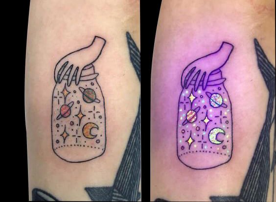 这家店除了常规黑灰和彩色纹身外,还可以做炫酷的荧光纹身,在夜店紫光灯照射下,能让你的纹身闪闪发光。