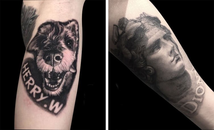 小编个人很欣赏他们做的黑灰写实风格的纹身,做出来的效果很有质感,如果想要纹肖像纹身的小伙伴可以了解一下哦。