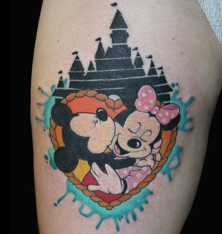 城堡中亲吻的米老鼠纹身