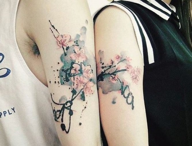 寒梅傲雪为君开,中国风的梅花泼墨纹身,具有意境美,代表了双方高洁的爱。