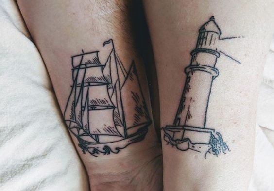 情侣帆船、灯塔纹身图案