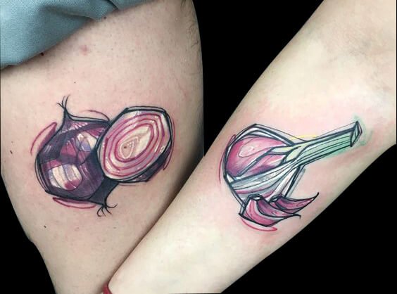 蔬菜元素的纹身也有情侣款,你是洋葱,我是大蒜,重口味情侣就此诞生。