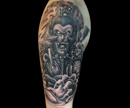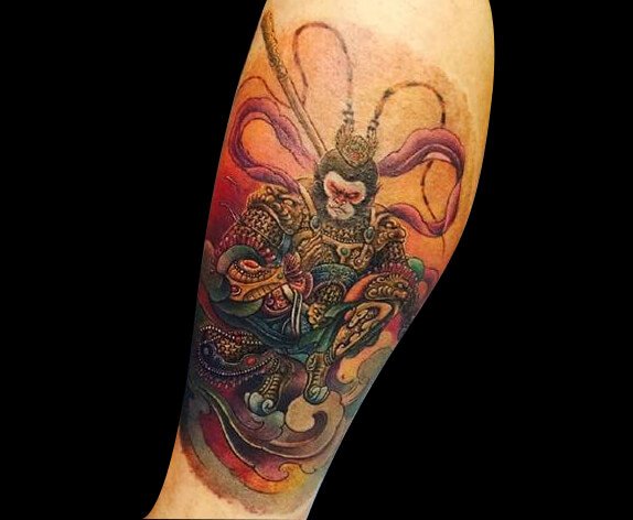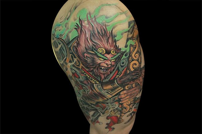 在纹身中,斗战胜佛一直都是经典素材,许多纹身爱好者之所以选择斗战胜佛的图案也正是因为图案背后所蕴含的勇敢机智、刚正不阿的含义。