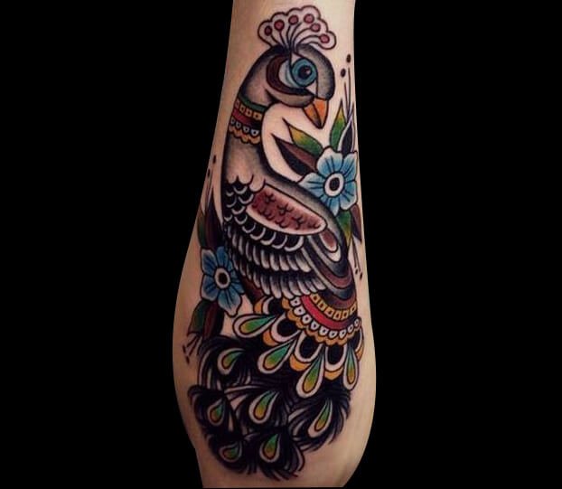 提起孔雀,自然就会想到开屏,但凡亲眼看到孔雀开屏的人,无一不被的的美丽所折服。孔雀被称为“百鸟之王”,可不仅是因为它的美丽,更是孔雀纹身图案有着吉祥、善良、美丽、华贵的象征,可谓是行走在凡间的凤凰。