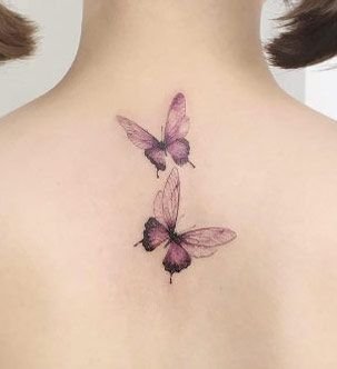 后背彩色蝴蝶纹身图案
